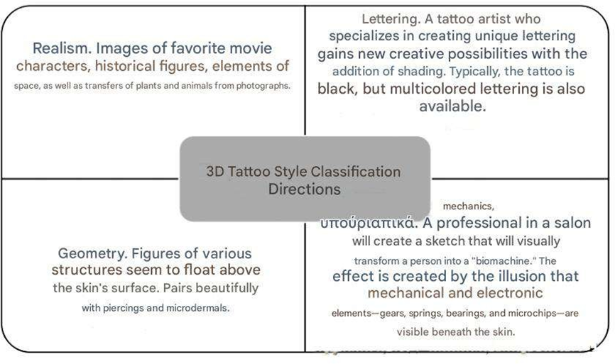Fig. 1 — Directions of classification of 3D tattoo styles [1]